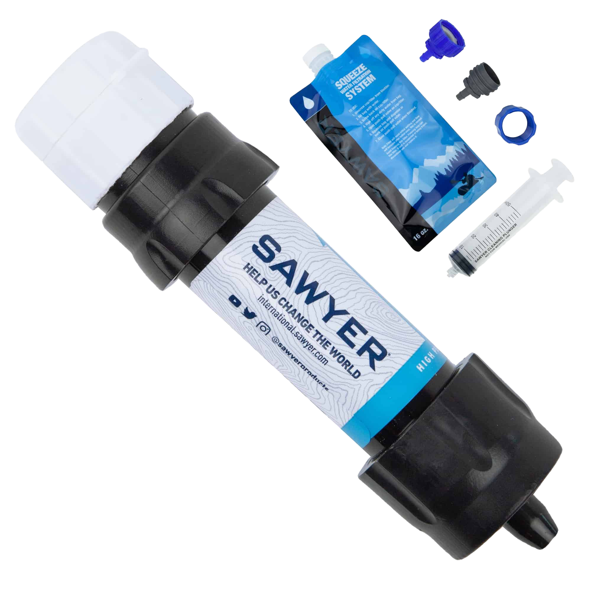 Sawyer Mini Water Filter. A lightweight, versatile personal filtration system, the second-generation Sawyer MINI Water Filter fits in the palm of your hand and has a total field weight of just 2 ounces The sawyer mini is rated to filter 100,000 gallons (380,000 liters)-That's more water than you will drink in your entire lifetime